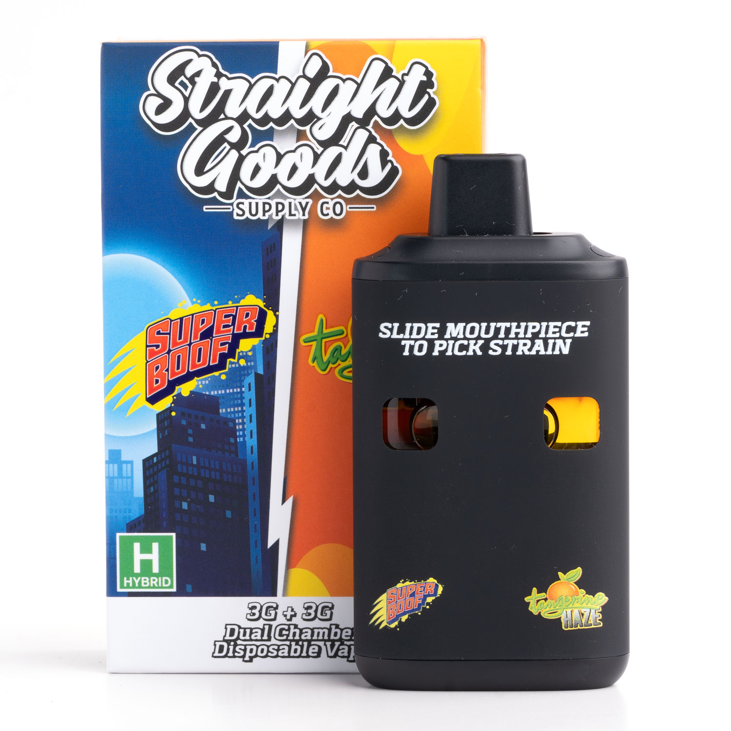 6g Dual Chamber Vape by Straight Goods provides double the power! Each vaporizer comes with a combo of 2 strains, both containing 3 grams for a total of 6 grams of distillate.